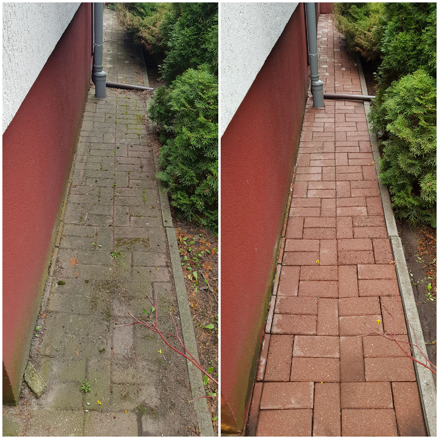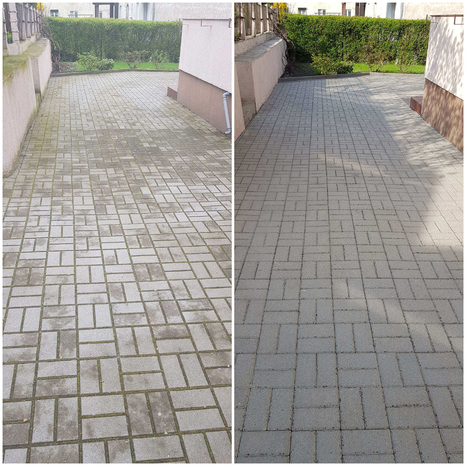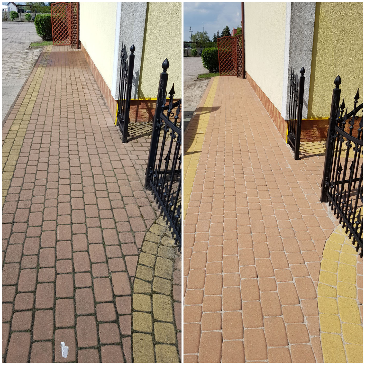 Zlecenie czyszczenia kostki i elewacji wykonane sprawnie, solidnie i profesjonalnie. Zeszła nawet rdza i wypalony mech na elewacji. Polecam z czystym sumieniem
