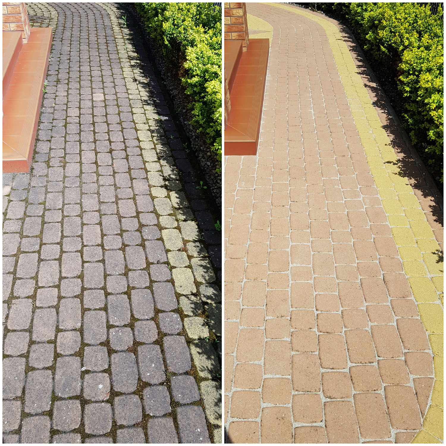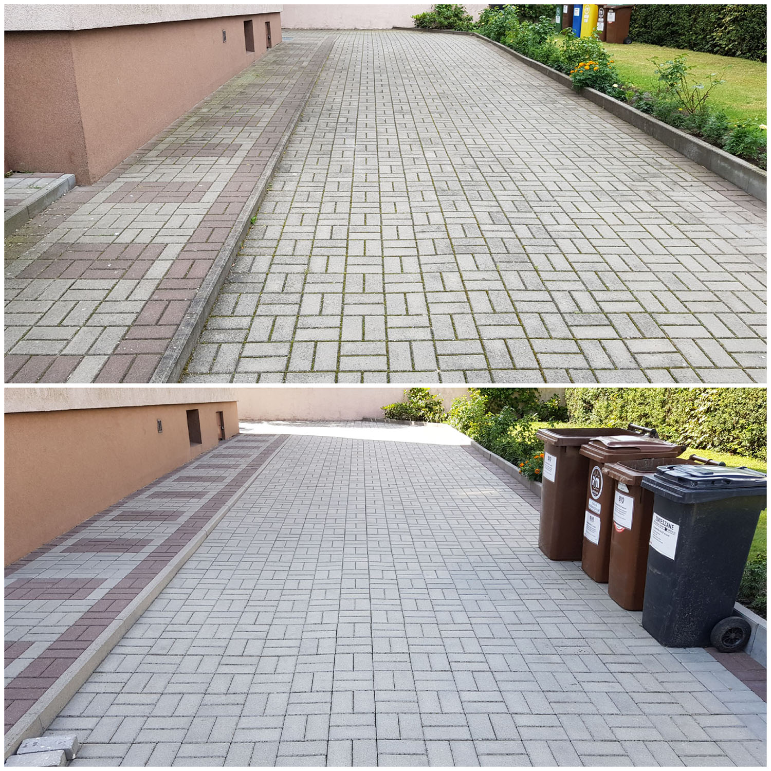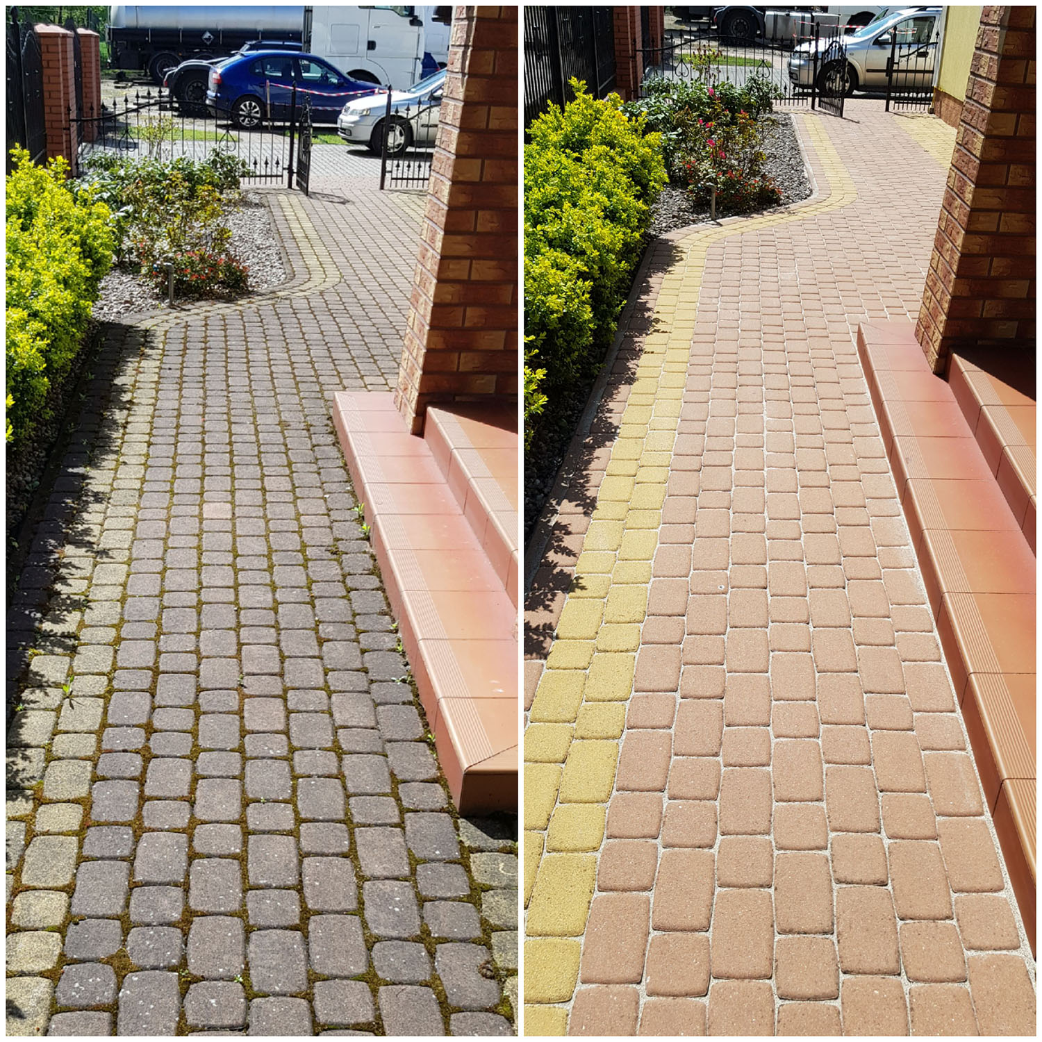 Zlecenie czyszczenia kostki i elewacji wykonane sprawnie, solidnie i profesjonalnie. Zeszła nawet rdza i wypalony mech na elewacji. Polecam z czystym sumieniem