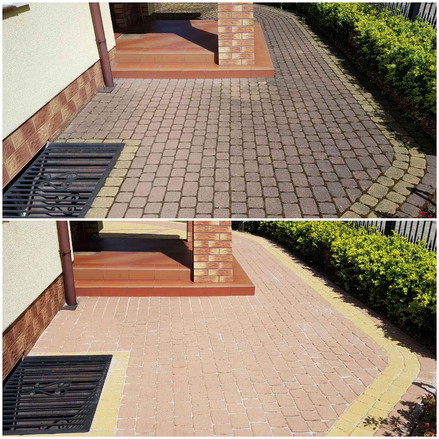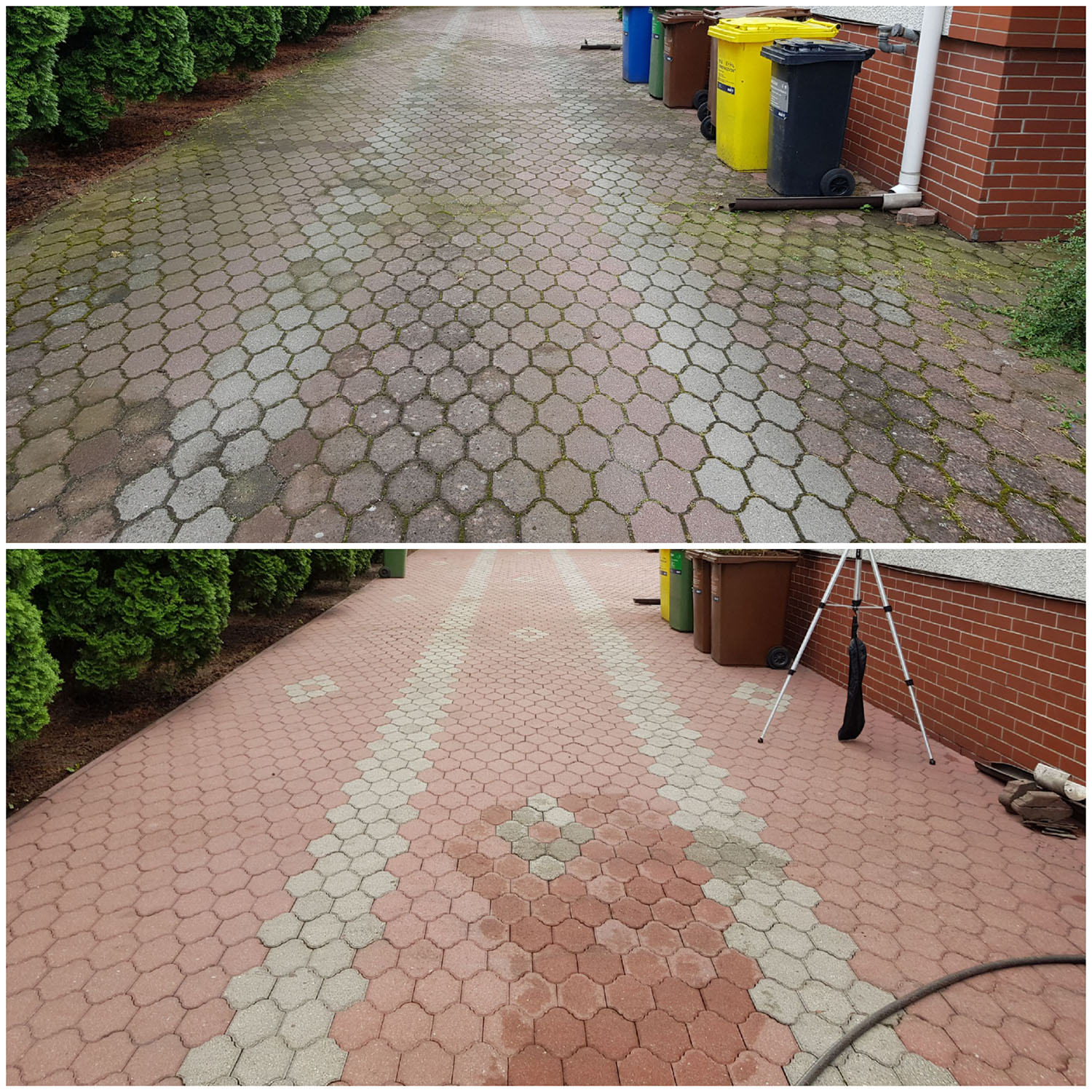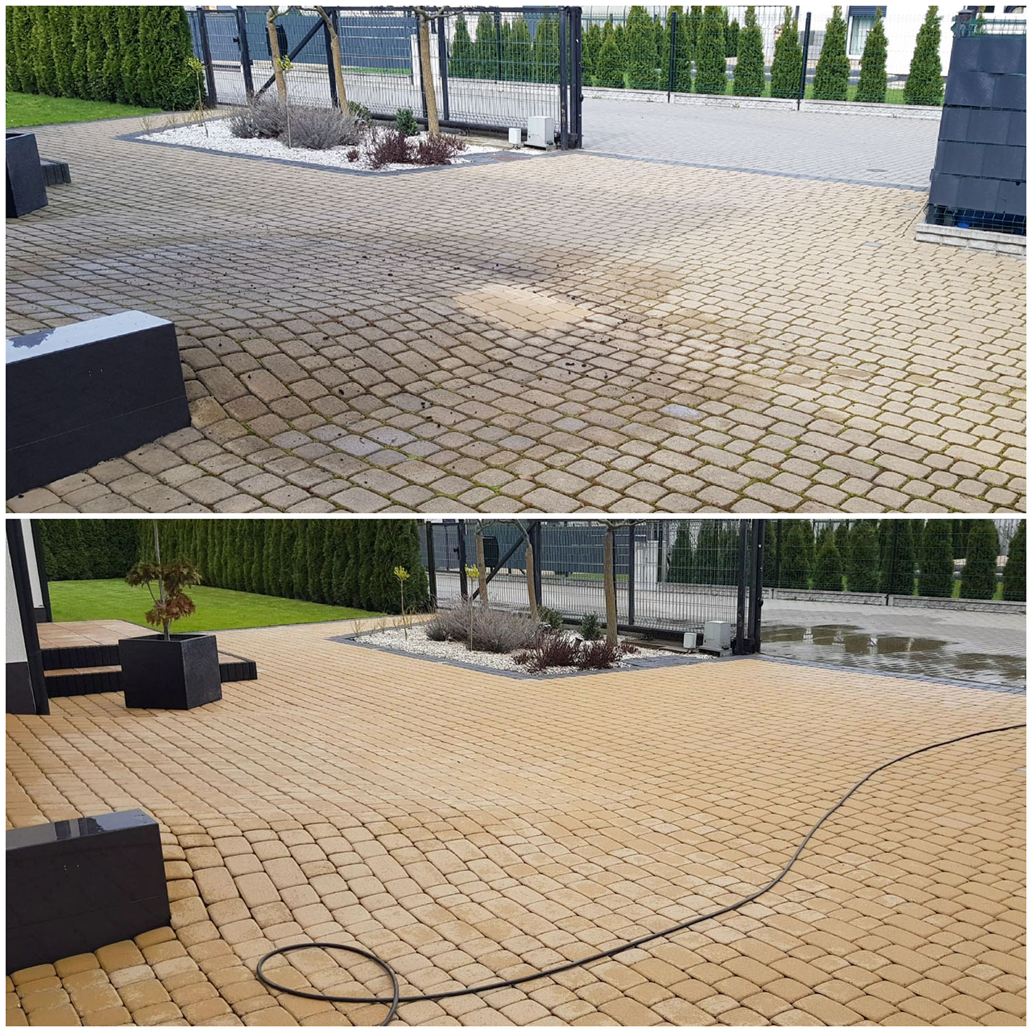 Zlecenie czyszczenia kostki i elewacji wykonane sprawnie, solidnie i profesjonalnie. Zeszła nawet rdza i wypalony mech na elewacji. Polecam z czystym sumieniem