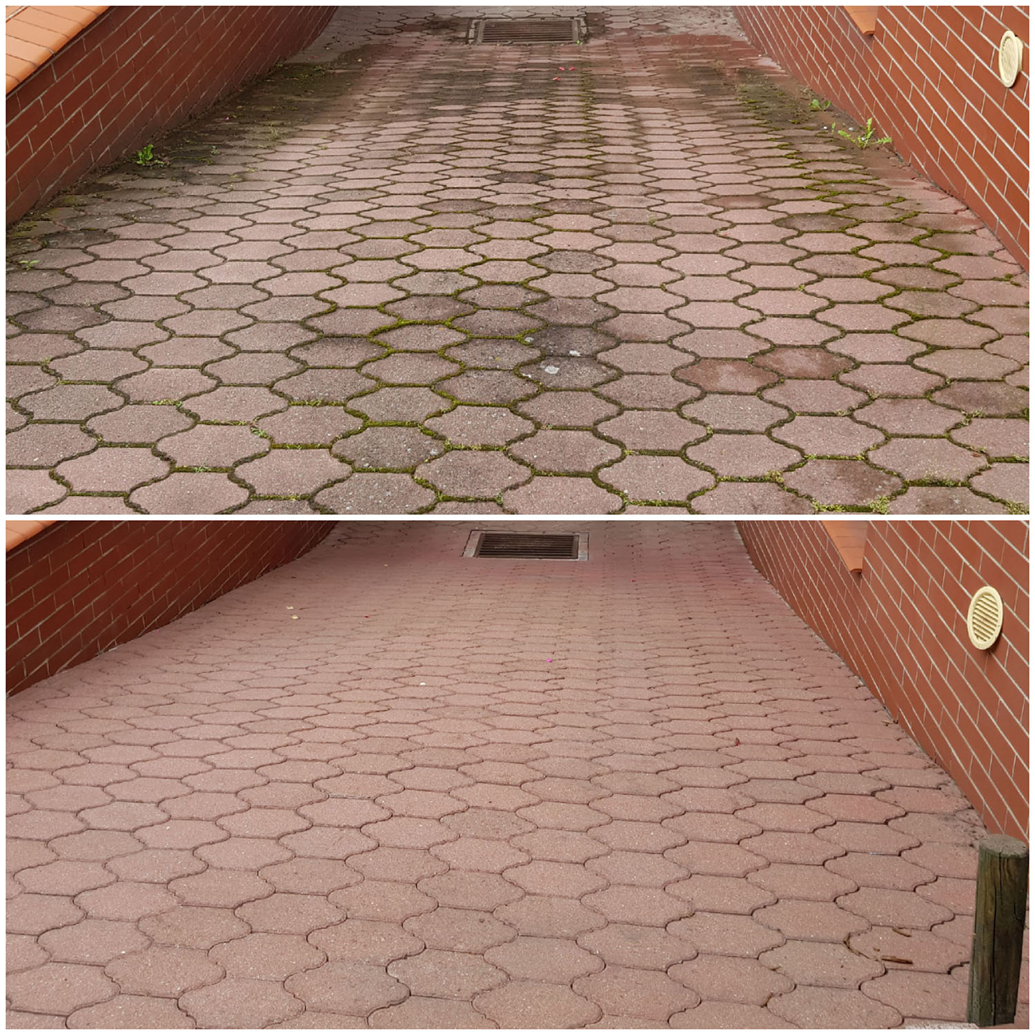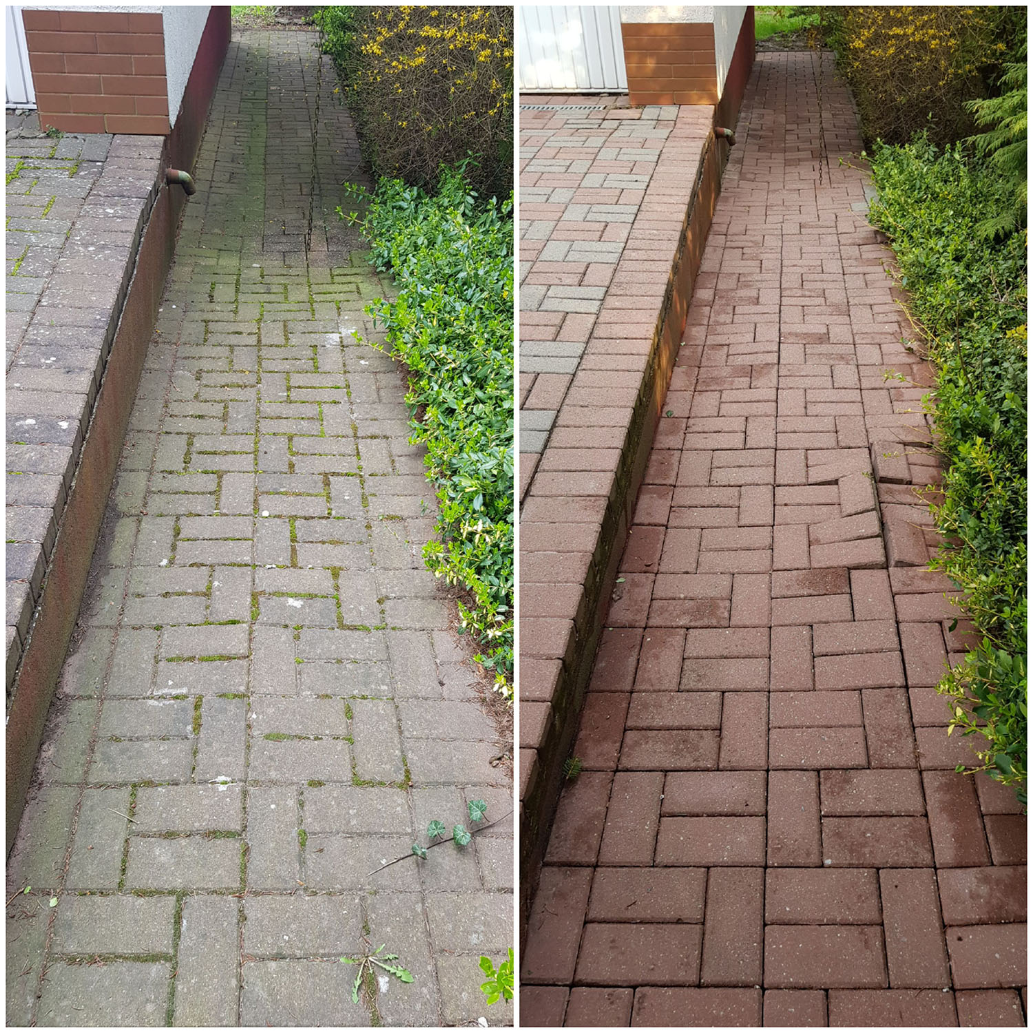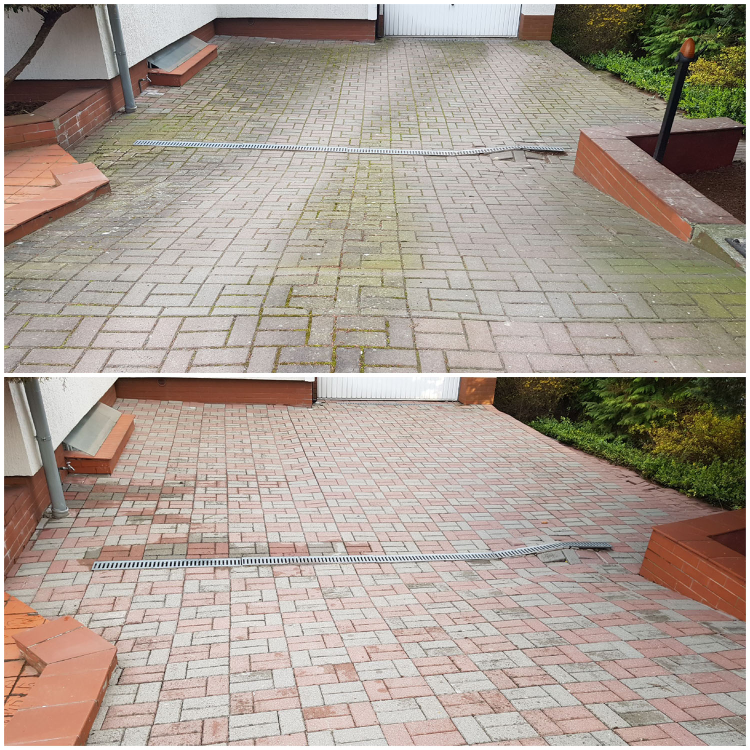 Zlecenie czyszczenia kostki i elewacji wykonane sprawnie, solidnie i profesjonalnie. Zeszła nawet rdza i wypalony mech na elewacji. Polecam z czystym sumieniem